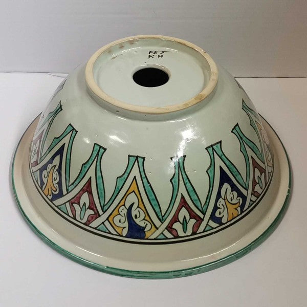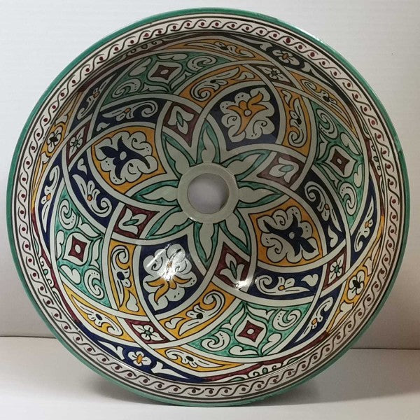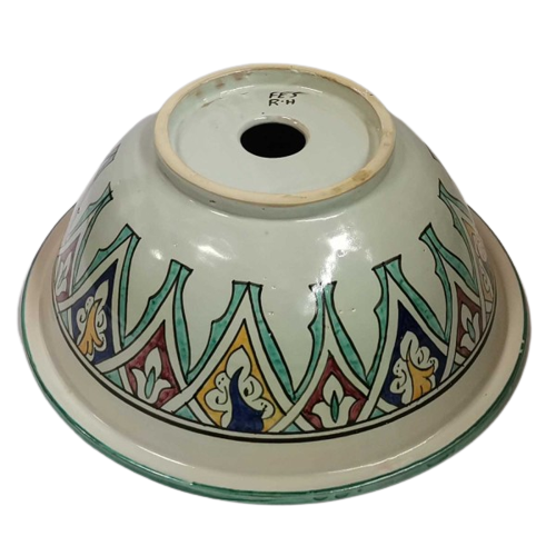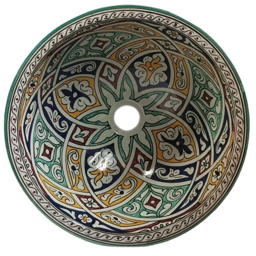 This sink is made in the traditional moroccan technique. Technique from Fez is famous for the richness of design and patterns as well as for the intensity of colours which are so characteristic for Morocco bathed in sunlight.