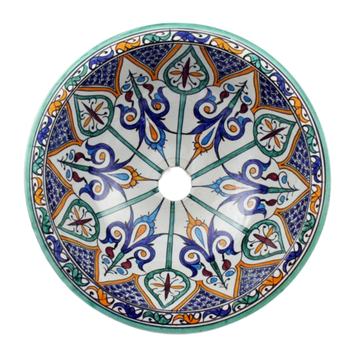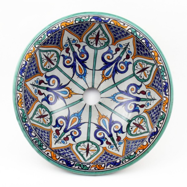 This sink is made in the traditional moroccan technique. Technique from Fez is famous for the richness of design and patterns as well as for the intensity of colours which are so characteristic for Morocco bathed in sunlight.