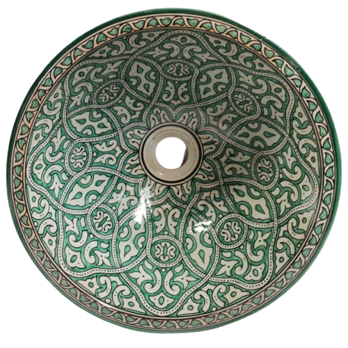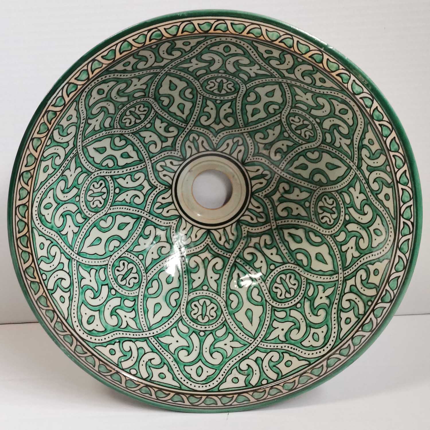 This sink is made in the traditional moroccan technique. Technique from Fez is famous for the richness of design and patterns as well as for the intensity of colours which are so characteristic for Morocco bathed in sunlight.