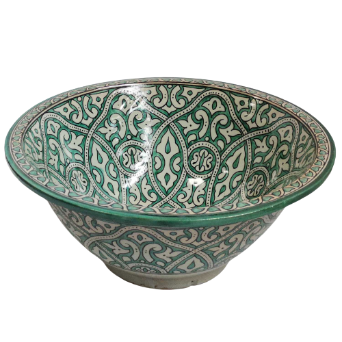 Because the basins are handmade by moroccan artist, which makes each of them unique, the basin delivered to you may slightly differ from the bowl presented in the photograph. In the photographs of the bowl you may see the reflections of light.