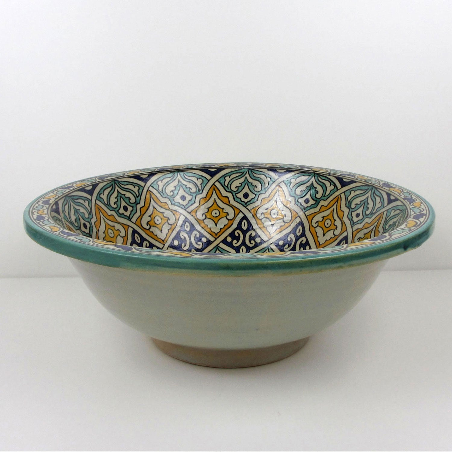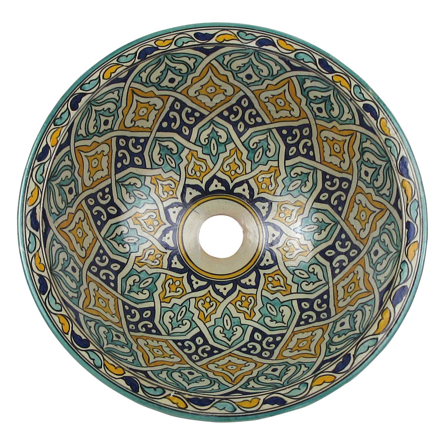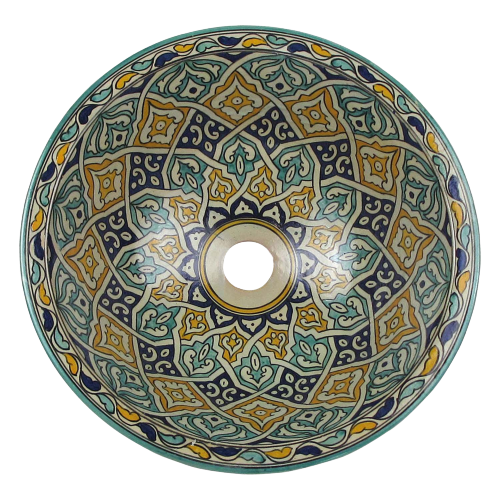 This sink is made in the traditional moroccan technique. Technique from Fez is famous for the richness of design and patterns as well as for the intensity of colours which are so characteristic for Morocco bathed in sunlight.