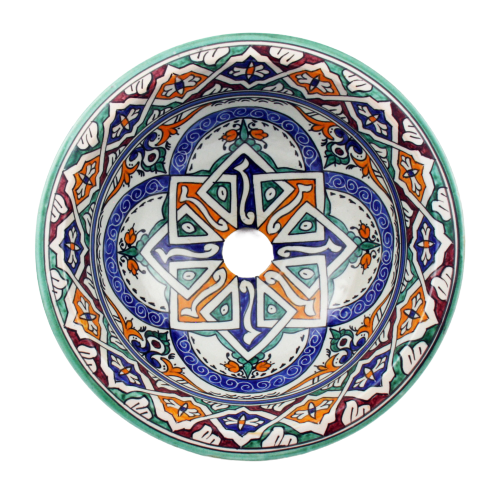 This sink is made in the traditional moroccan technique. Technique from Fez is famous for the richness of design and patterns as well as for the intensity of colours which are so characteristic for Morocco bathed in sunlight.