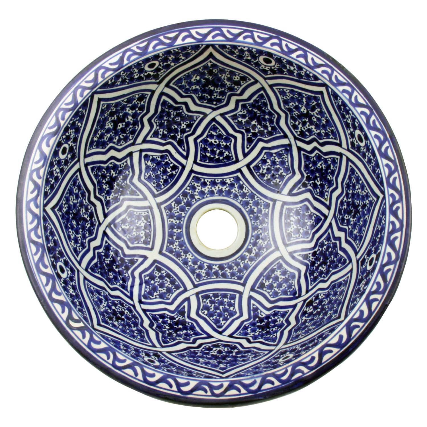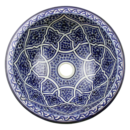 This sink is made in the traditional moroccan technique. Technique from Fez is famous for the richness of design and patterns as well as for the intensity of colours which are so characteristic for Morocco bathed in sunlight.