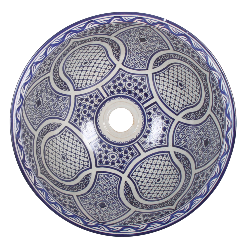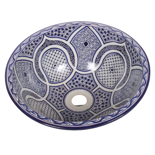 This sink is made in the traditional moroccan technique. Technique from Fez is famous for the richness of design and patterns as well as for the intensity of colours which are so characteristic for Morocco bathed in sunlight.