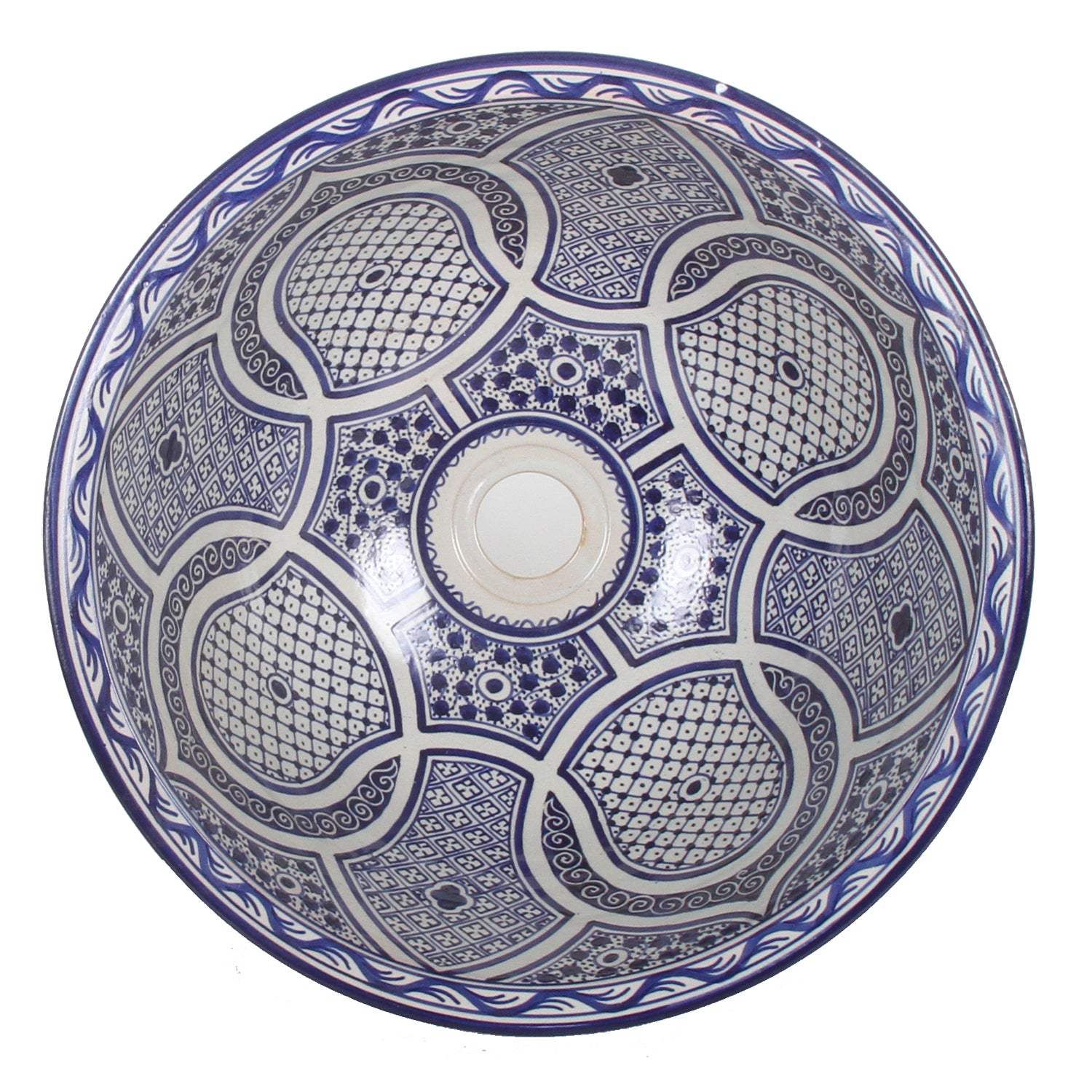 Because the basins are handmade by moroccan artist, which makes each of them unique, the basin delivered to you may slightly differ from the bowl presented in the photograph. In the photographs of the bowl you may see the reflections of light.