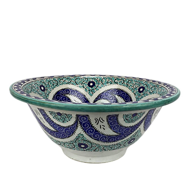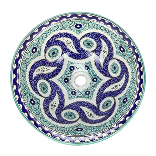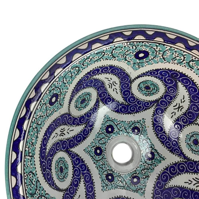 This sink is made in the traditional moroccan technique. Technique from Fez is famous for the richness of design and patterns as well as for the intensity of colours which are so characteristic for Morocco bathed in sunlight.