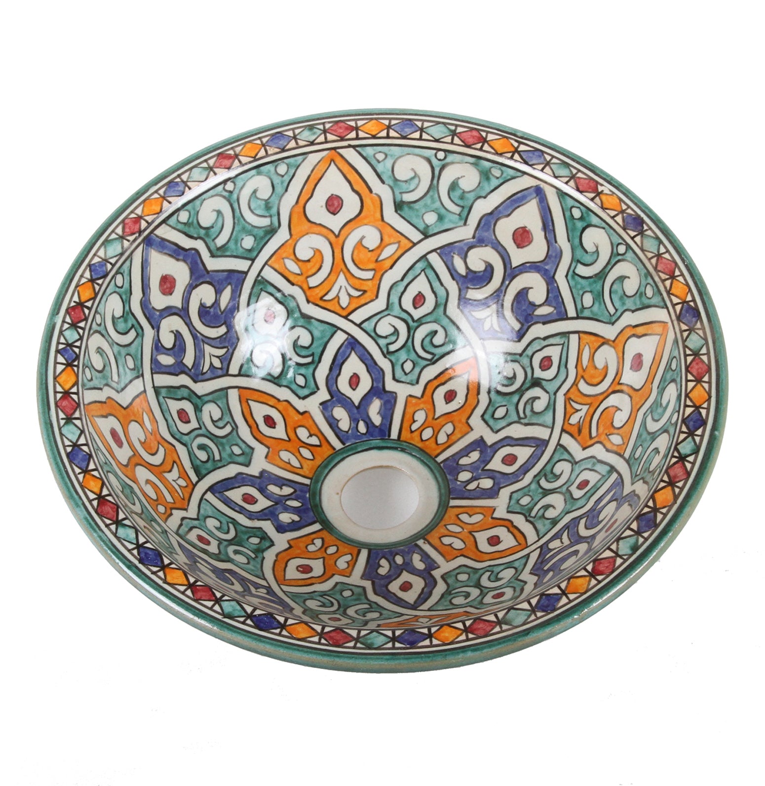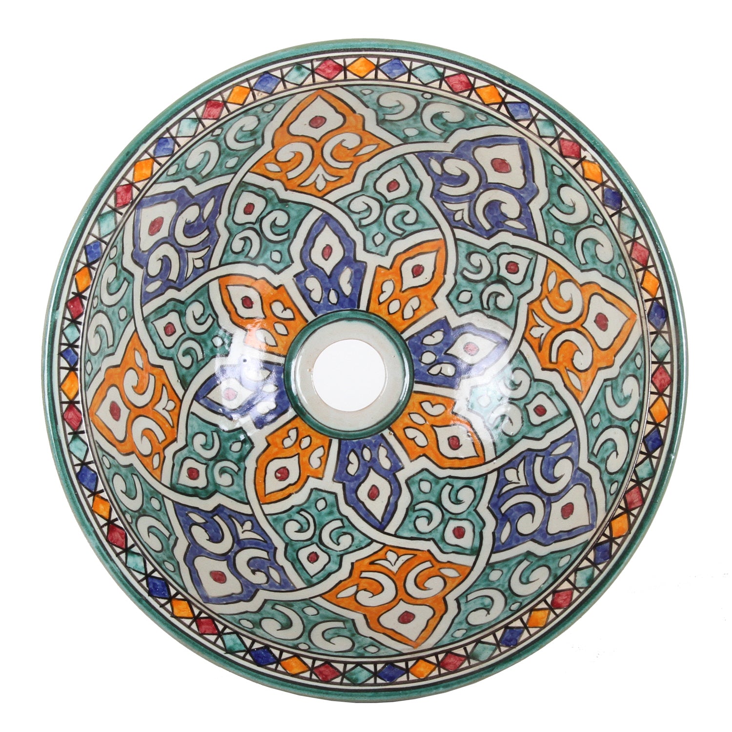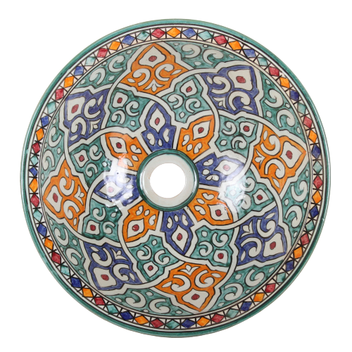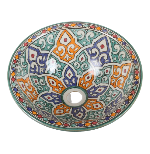 This sink is made in the traditional moroccan technique. Technique from Fez is famous for the richness of design and patterns as well as for the intensity of colours which are so characteristic for Morocco bathed in sunlight.