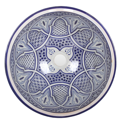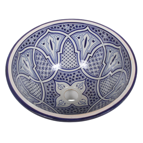 This sink is made in the traditional moroccan technique. Technique from Fez is famous for the richness of design and patterns as well as for the intensity of colours which are so characteristic for Morocco bathed in sunlight.