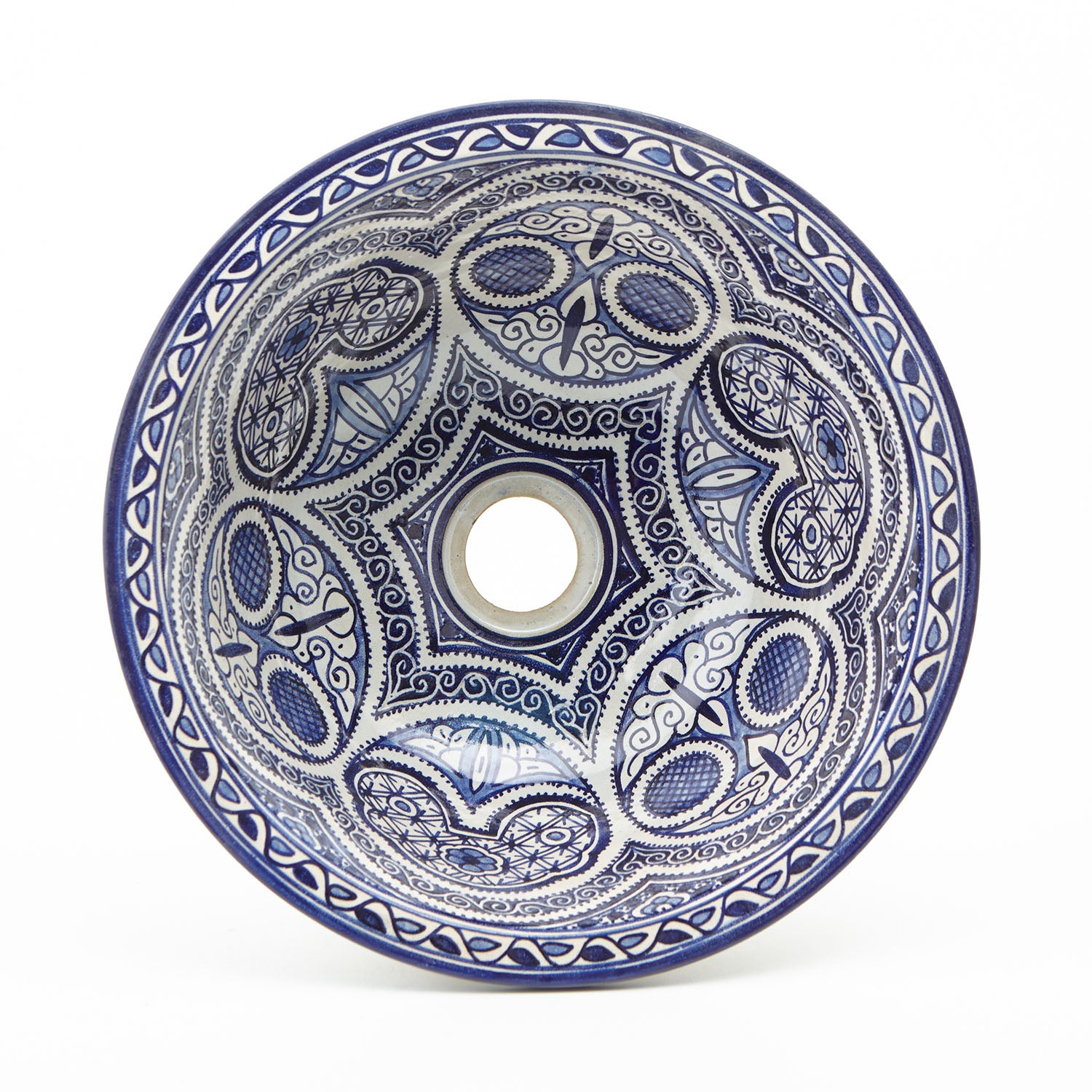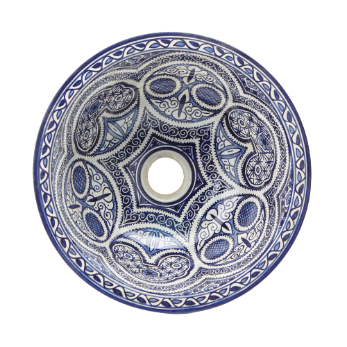 This sink is made in the traditional moroccan technique. Technique from Fez is famous for the richness of design and patterns as well as for the intensity of colours which are so characteristic for Morocco bathed in sunlight.