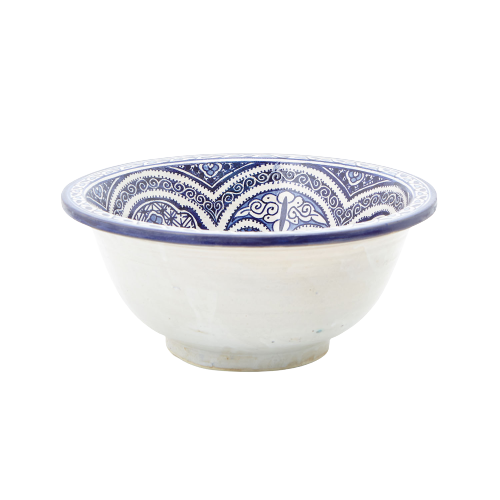 Because the basins are handmade by moroccan artist, which makes each of them unique, the basin delivered to you may slightly differ from the bowl presented in the photograph. In the photographs of the bowl you may see the reflections of light.
