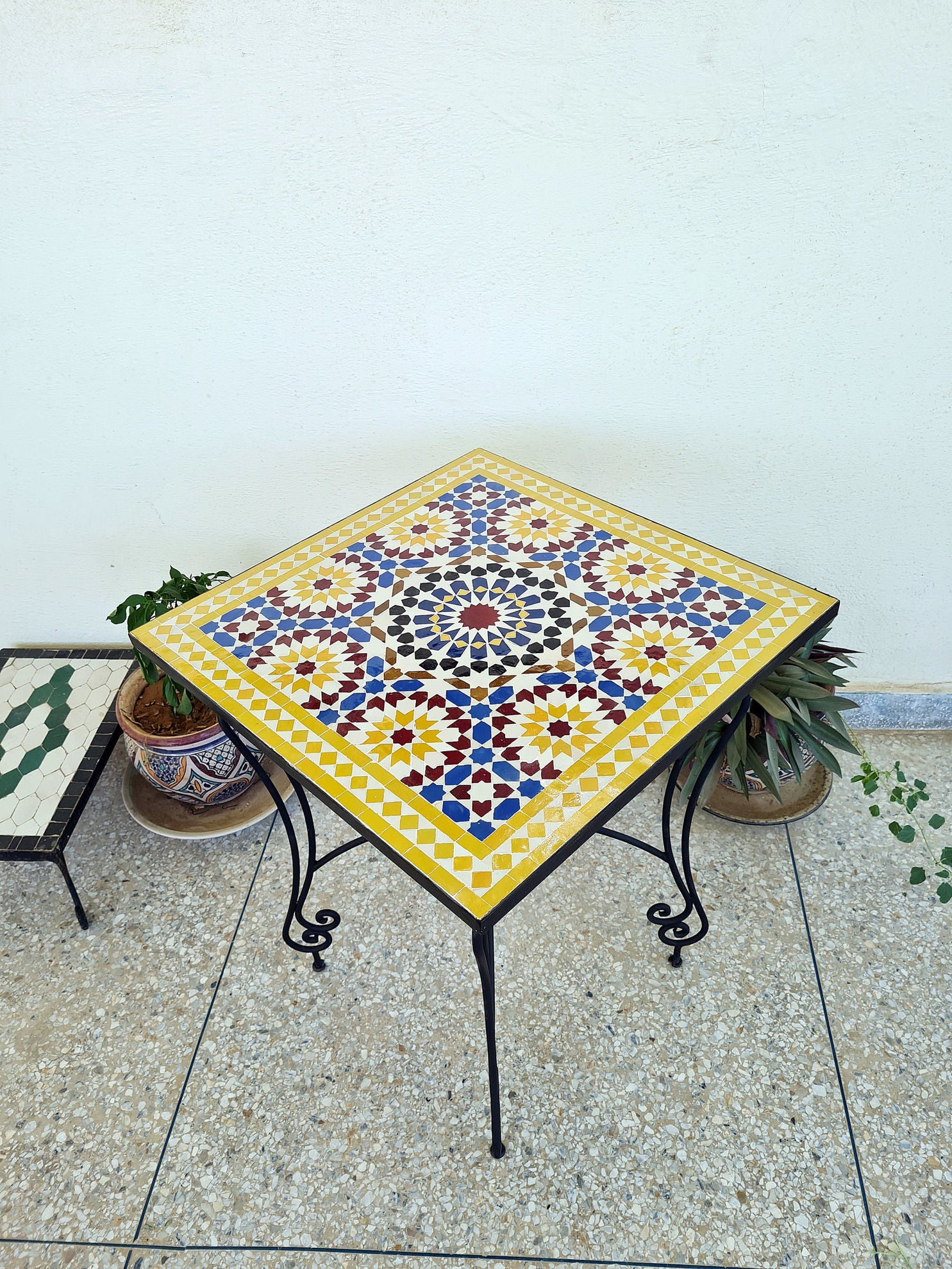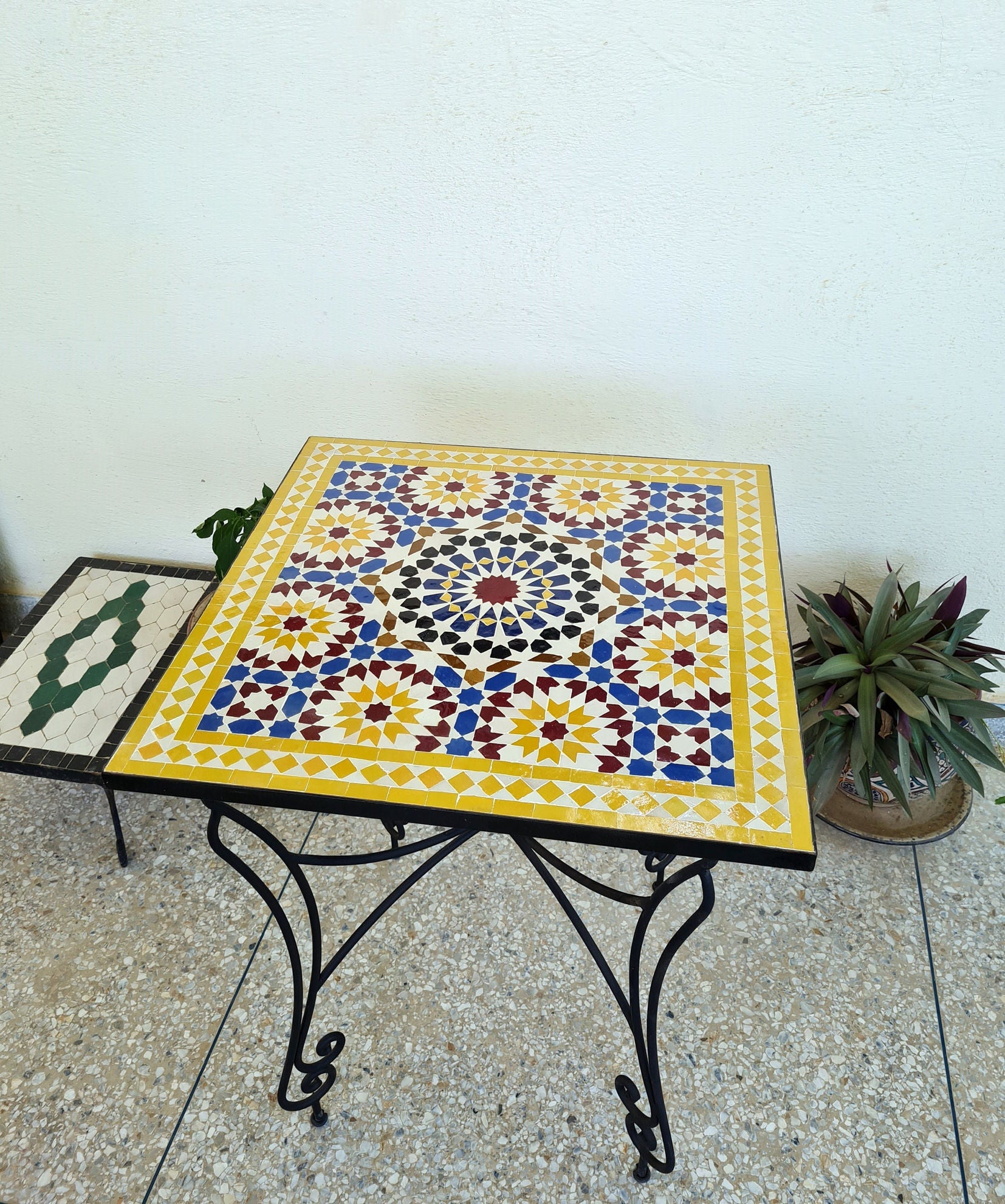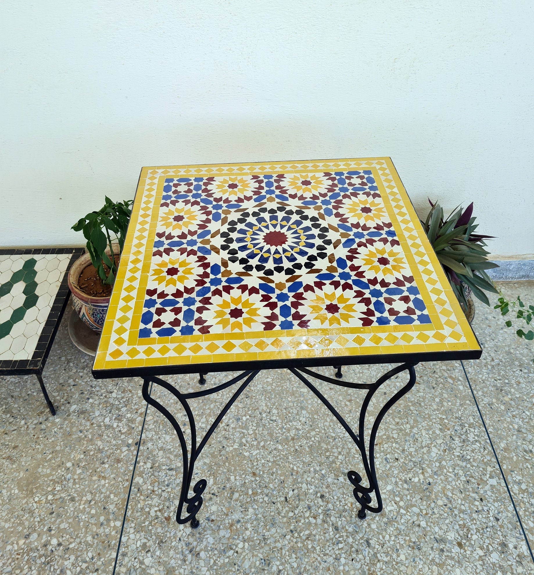 Our Moroccan Mosaic Tables could be used indoor or outdoor as patio furniture and garden furniture. They are sealed for easy care and need only to be wiped clean with a damp cloth.