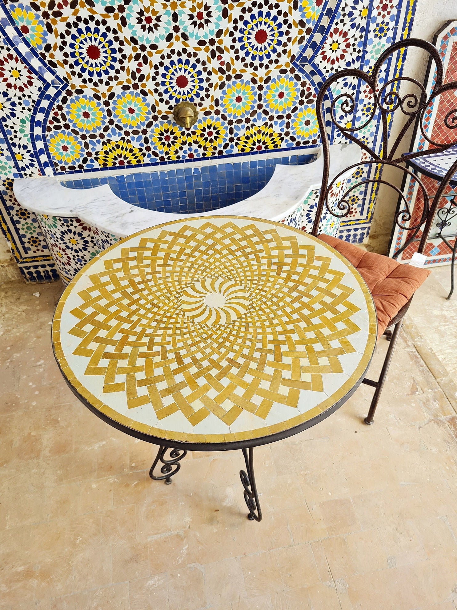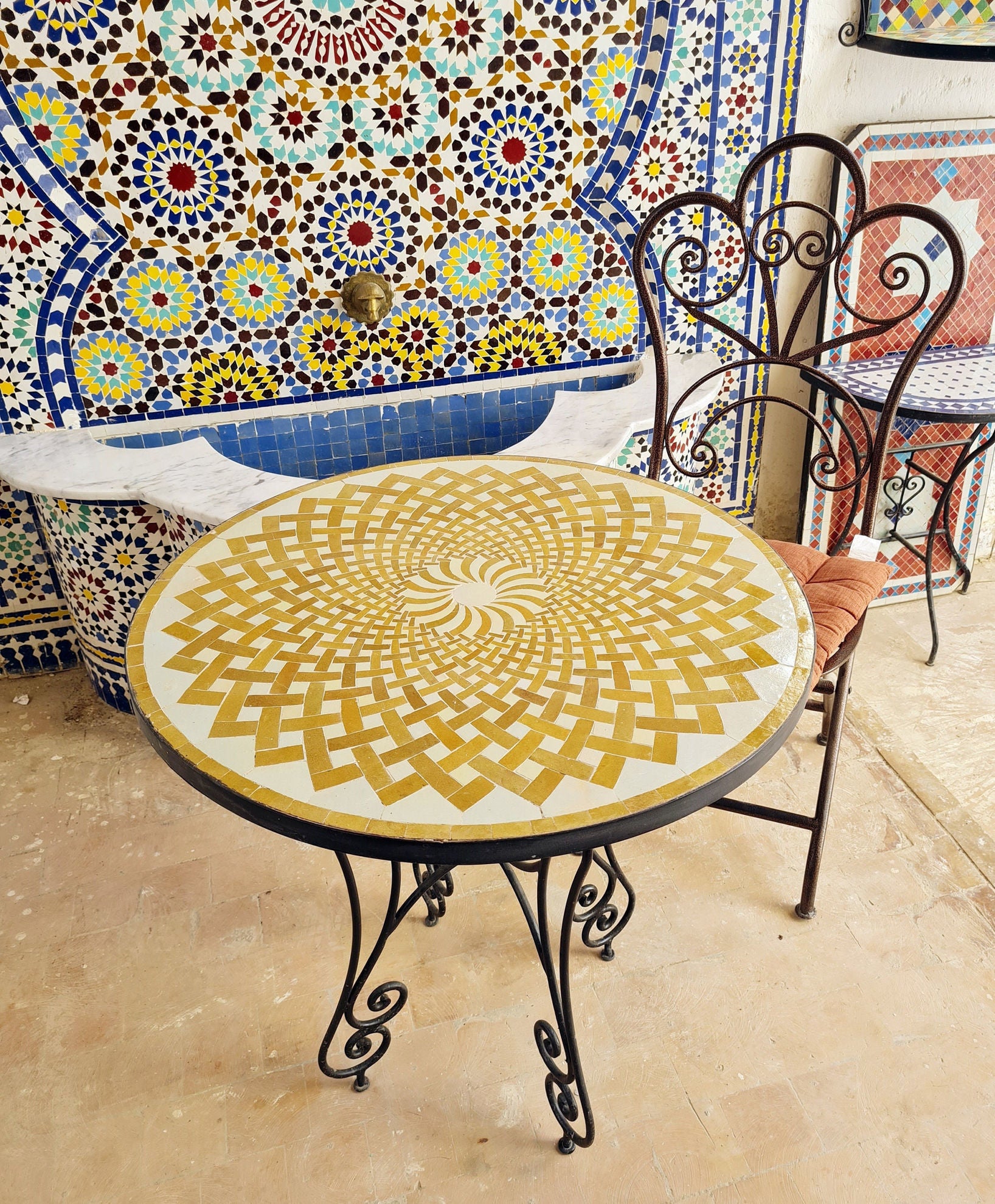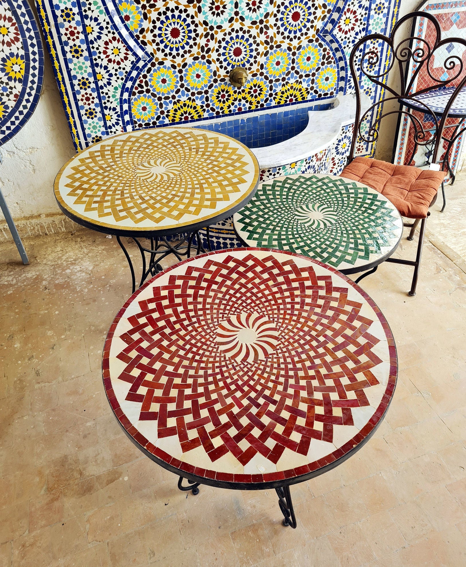 We have a wide selection of beautiful Zillige mosaic dining tables, tile coffee tables, bistro tile tables, mosaic kitchen table, rectangular dining tables, garden round tables, in colorful geometric patterns.