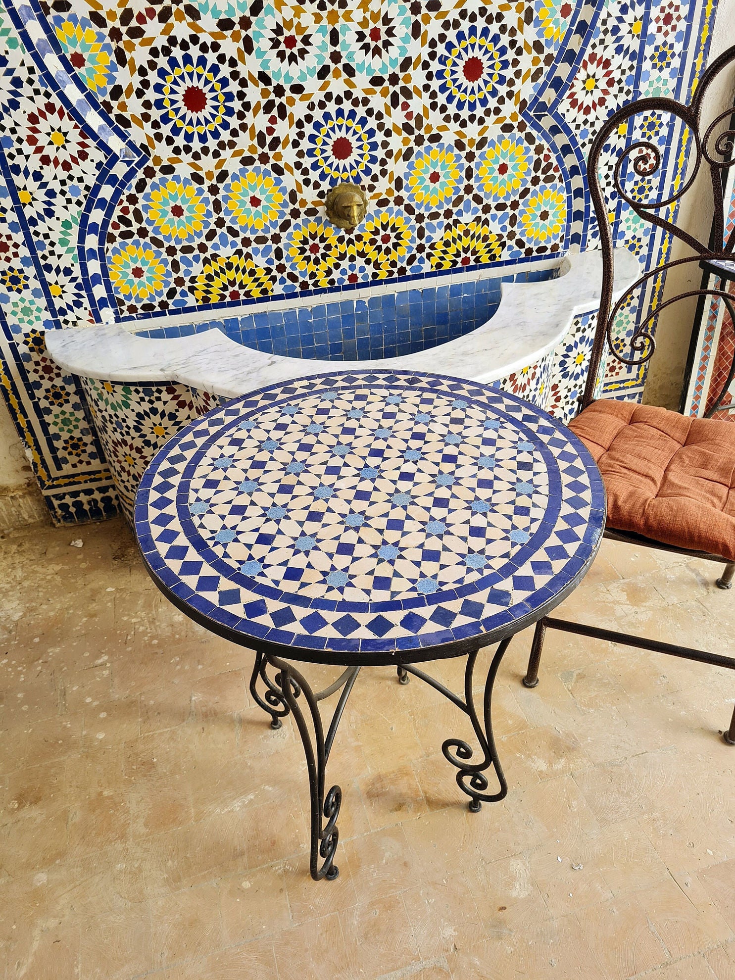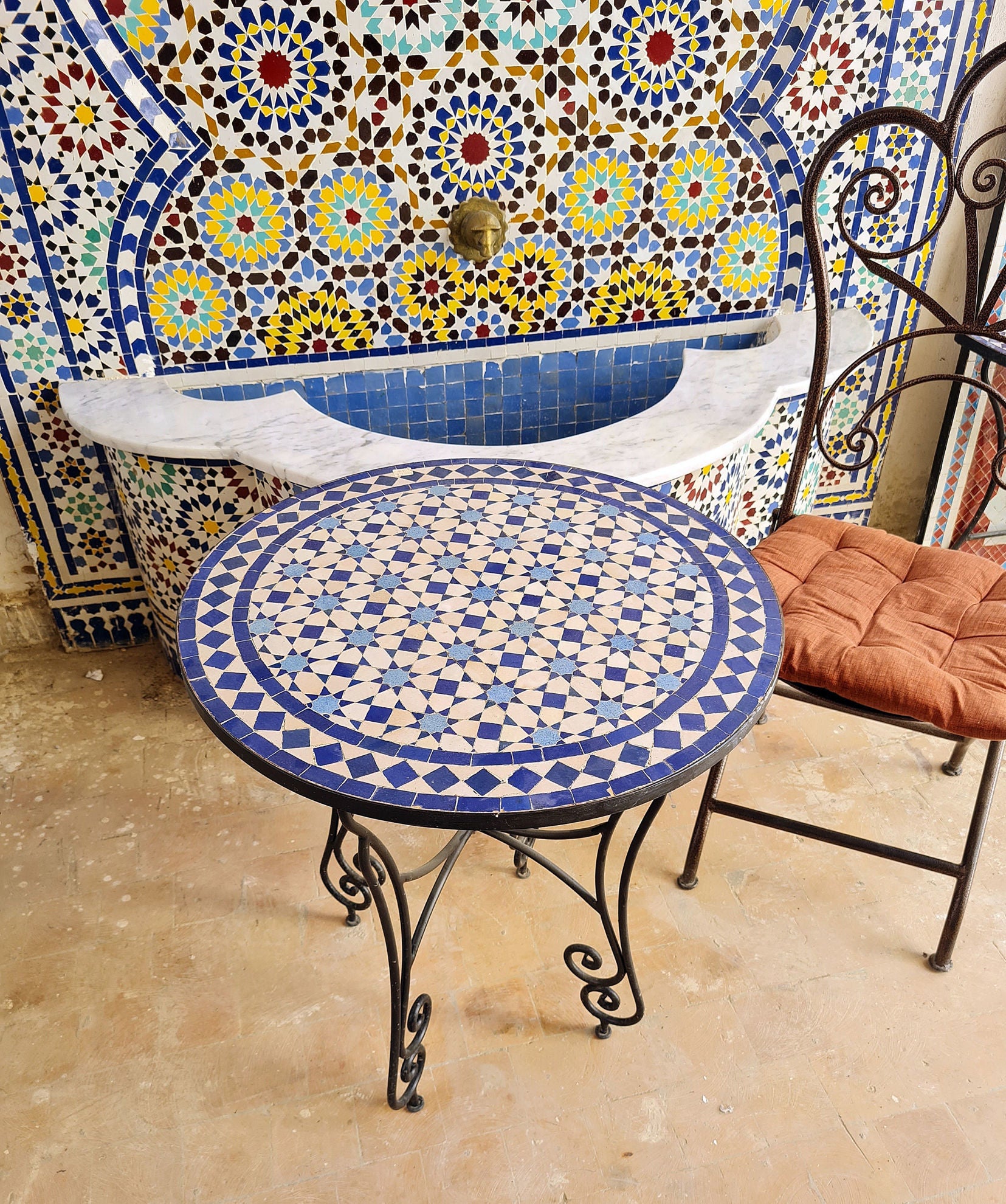Our Moroccan Mosaic Tables could be used indoor or outdoor as patio furniture and garden furniture. They are sealed for easy care and need only to be wiped clean with a damp cloth.