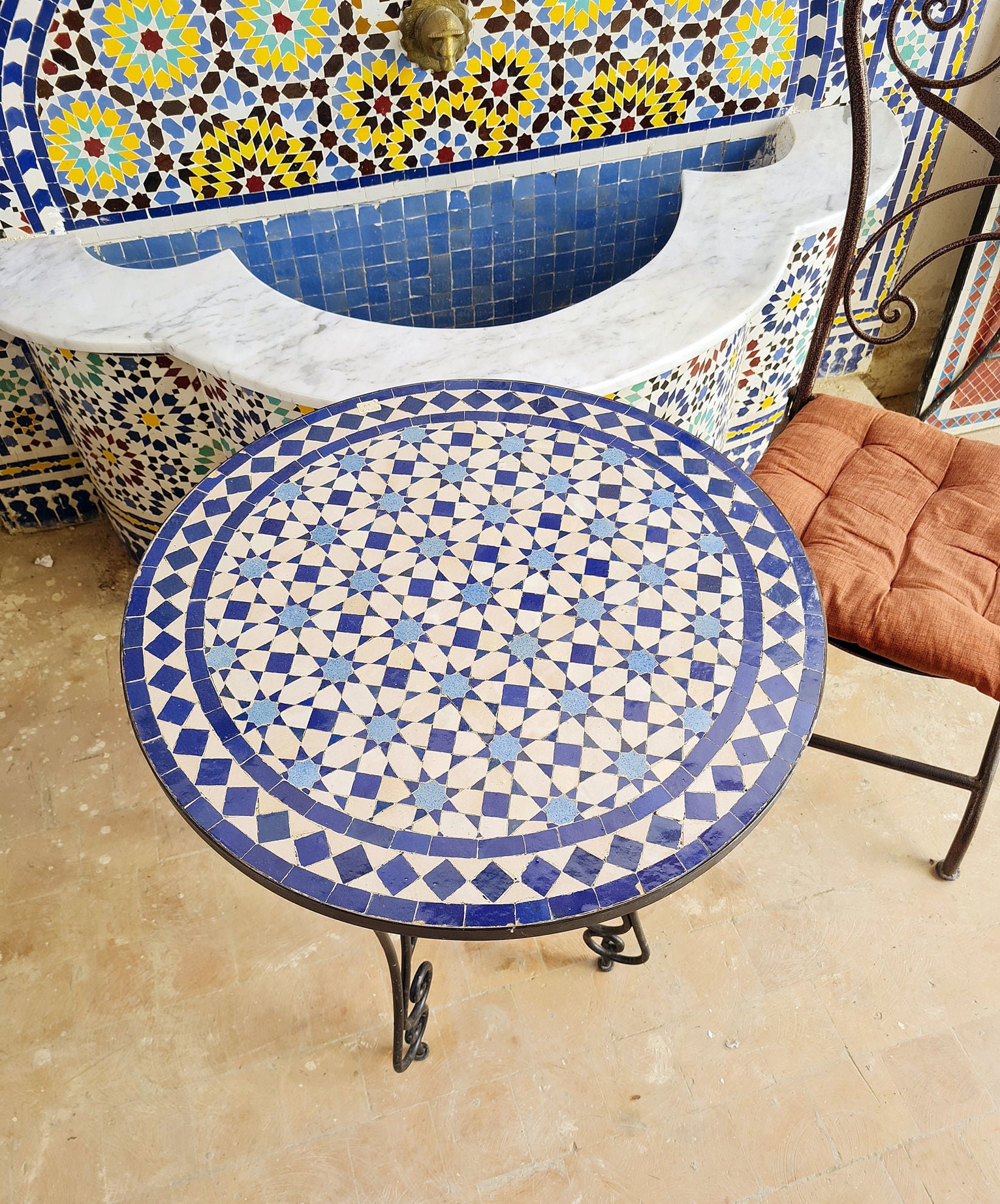 We have a wide selection of beautiful Zillige mosaic dining tables, tile coffee tables, bistro tile tables, mosaic kitchen table, rectangular dining tables, garden round tables, in colorful geometric patterns.
