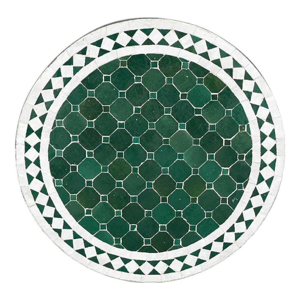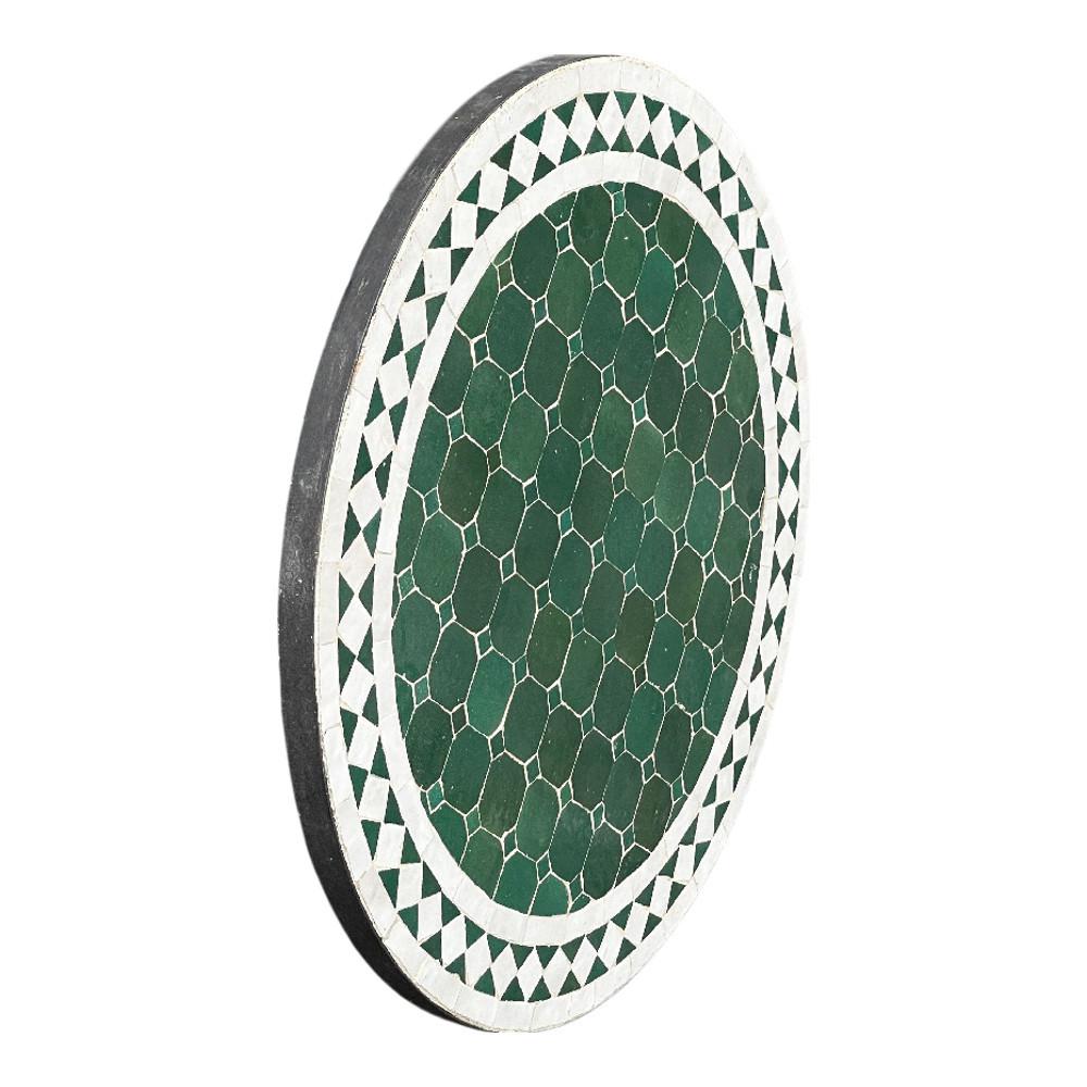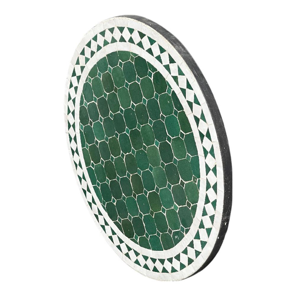 All our tile tabletops are imported and handcrafted in Morocco. The heavy Moroccan mosaic tile table tops just sit on the classic wrought iron table bases.