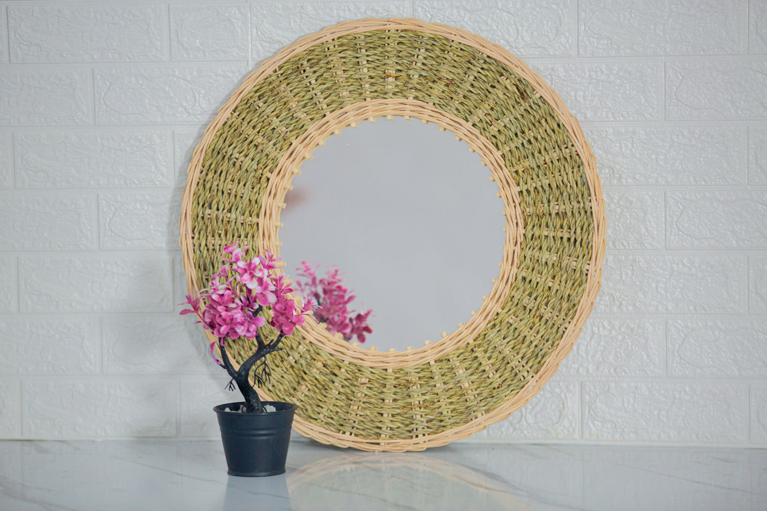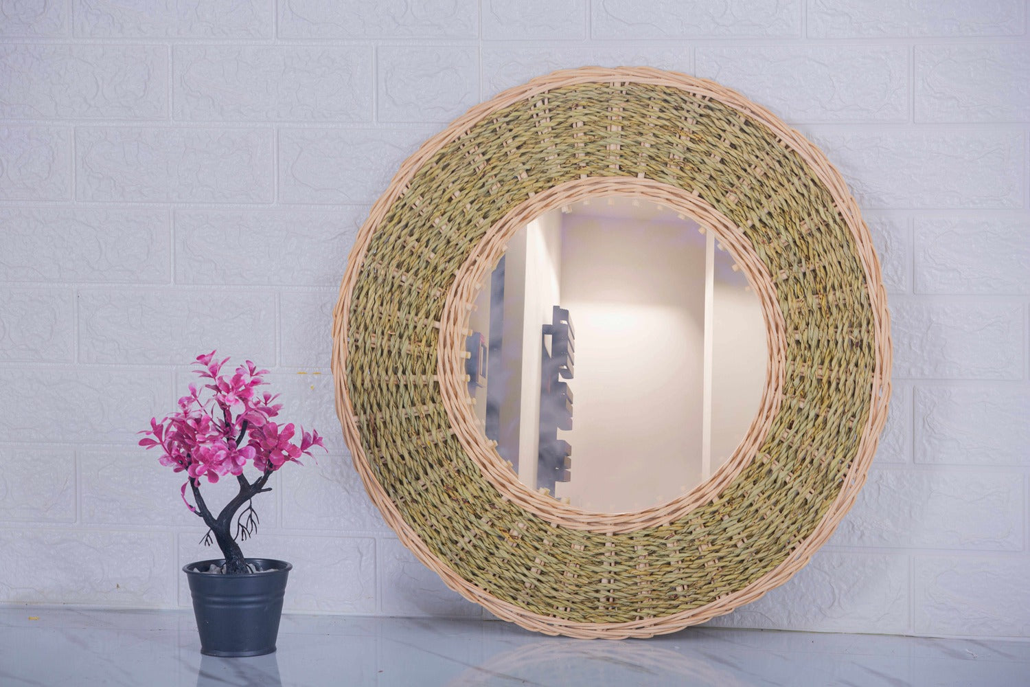 This round decorative mirror with the natural texture "boho flair" blends perfectly into the vintage, chic and modern décor.